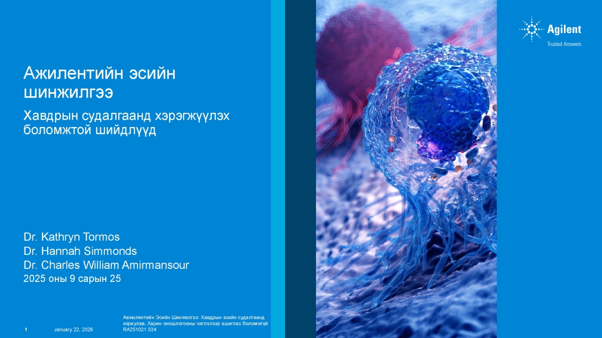 Agilent Technologies-ийн эсийн шинжилгээний орчин үеийн шийдлүүдийг танилцуулсан энэхүү илтгэл нь хавдрын судалгаа, эсийн биологийн чиглэлээр ажиллаж буй судлаач, лабораториудад зориулсан практик ач холбогдолтой мэдээллийг багтаасан болно.